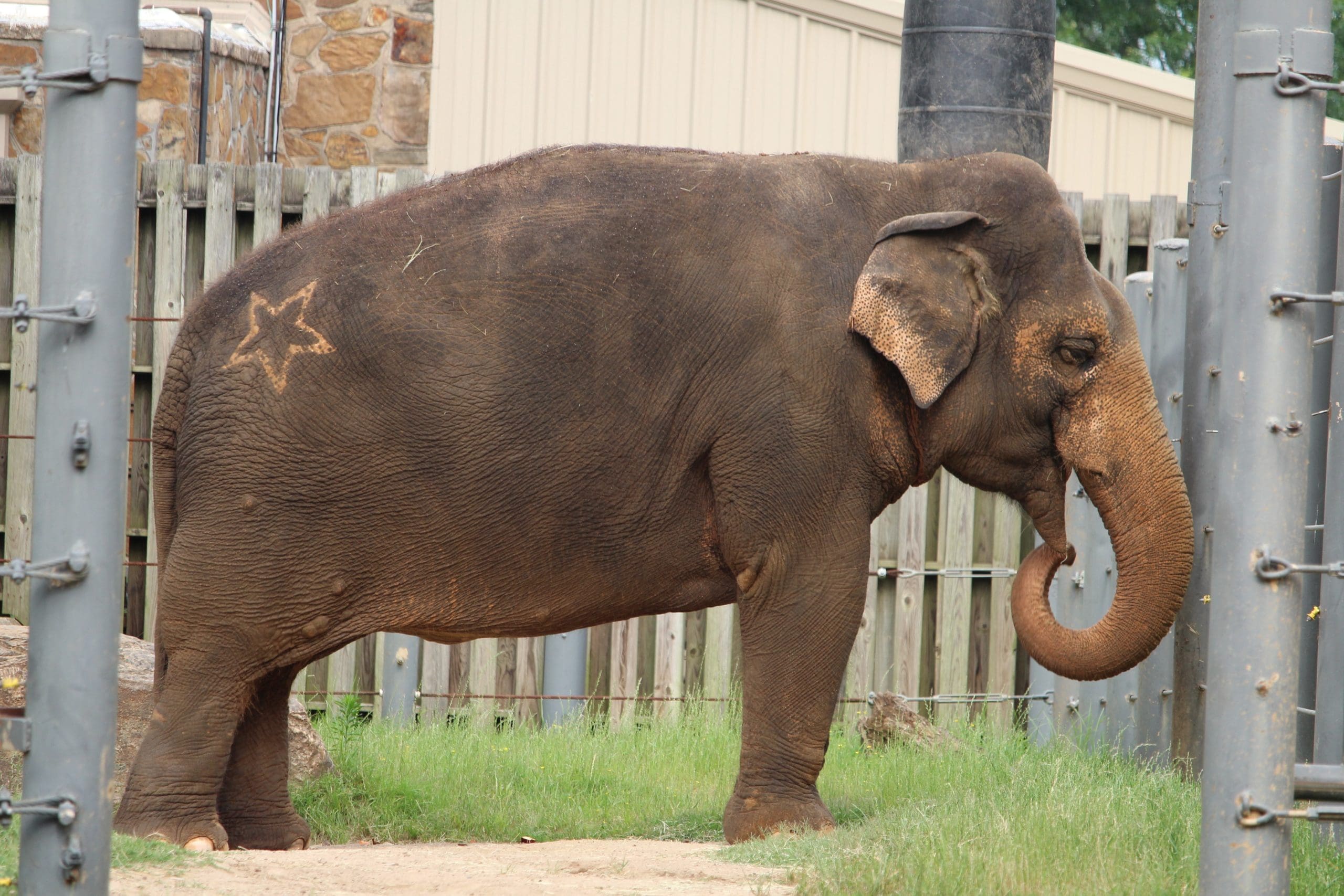 Babe was born in Myanmar and began life in a logging camp before being sold into the circus trade. Around 1980, she and three other elephants were purchased by circus performer Alex Gautier, who later toured under the Ringling Bros. label. After two decades in performance, Babe retired from circus life in 2000. She arrived at the Little Rock Zoo in 2013, where she has thrived under specialized care. She is easily recognized by the distinctive star-shaped brands on each of her hips—markings applied during her time in Burma (now Myanmar) to reflect the country’s flag and identify her as a working elephant.