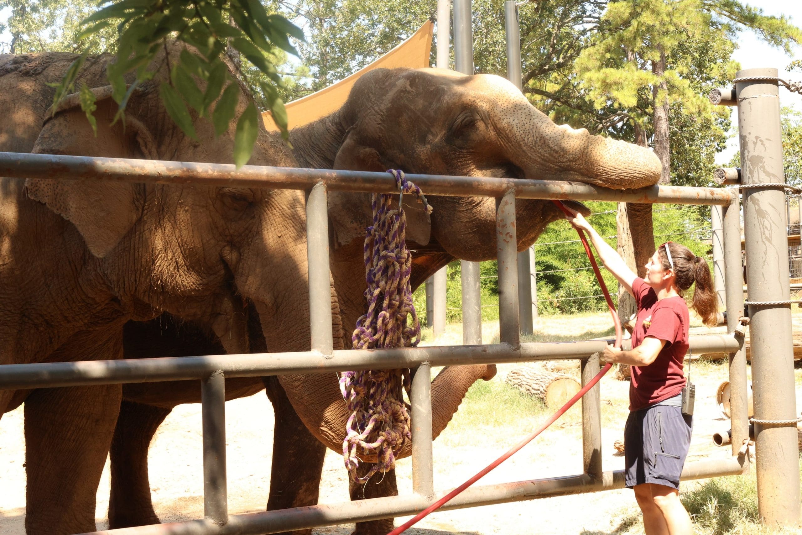 Unlike many zoos that house elephants, the Little Rock Zoo focuses exclusively on geriatric female elephants as part of a specialized care program designed to support the unique needs of aging elephants. This program includes a flexible habitat with three separate yards, allowing the elephants space, choice, and individualized care in a safe, enriching environment. According to Kristin Grove, the Zoo’s Hoofstock Curator and Elephant Manager, “We consider ourselves like a nursing home for older female elephants. We’re not really set up for males. Not many facilities do take in older elephants strictly.” Male elephants require heavily reinforced pens, and younger female elephants need space for breeding and herd dynamics. By focusing on older females, the Little Rock Zoo has carved out a niche in geriatric elephant care.