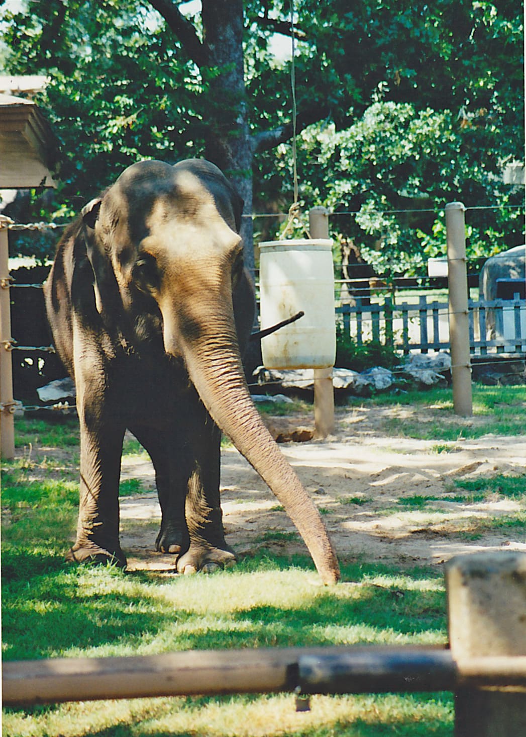 Mary joined the Little Rock Zoo in 2001 as a companion for Ellen after retiring from a career in performance. Donated by Ringling Bros. Circus following her time at their conservation center, Mary brought with her a rich and colorful past. Born in Myanmar, she performed for years under legendary trainer Gunter Gebel-Williams with Germany’s Circus Williams-Althoff and later with Ringling Bros. and Barnum & Bailey. Despite her background, Mary quickly adapted to a quieter life at the Zoo, where she and Ellen formed a close and lasting bond. The two were often seen side by side, a testament to the deep social connections so vital to elephant well-being. Mary passed away in 2011 at approximately 60 years old.