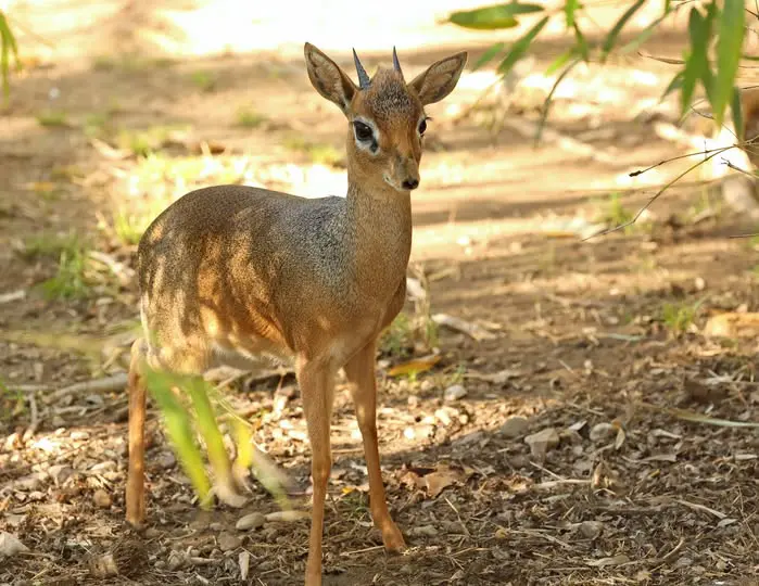 Dik-diks are named for the distinctive alarm call they make when startled—a “dik-dik” sound that echoes through the African bush. These petite antelopes stand only about 12 to 16 inches tall at the shoulder, making them one of the smallest antelope species in the world. Despite their size, dik-diks are incredibly agile and can dart through dense vegetation with ease, thanks to their slender legs and nimble frame.