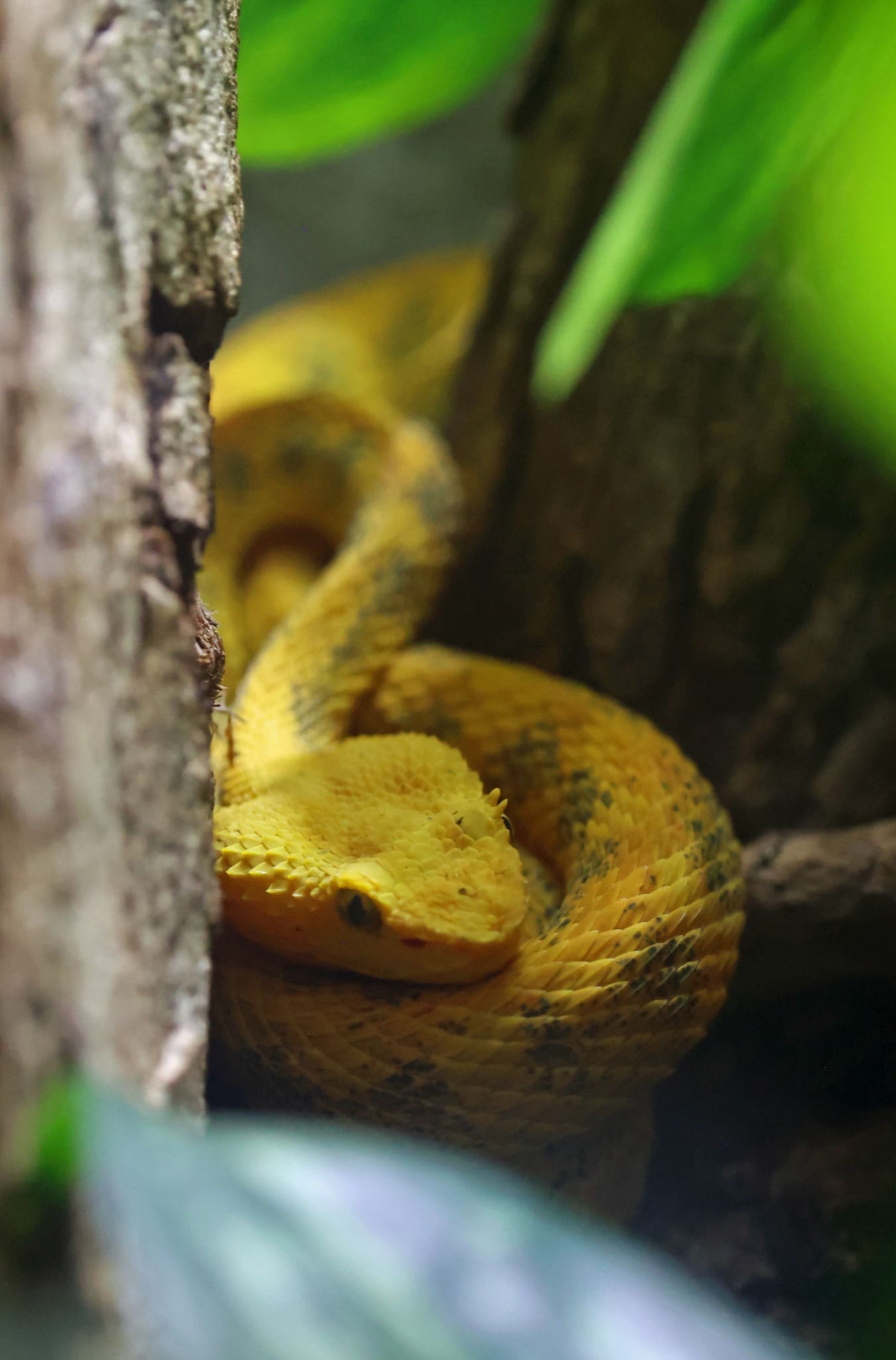 • Scientists aren’t quite sure what the purpose of the “eyelash” scales are on these snakes. It is thought that they aid in camouflage by breaking up the snakes silhouette and may protect their eyes when moving through thick vegetation.