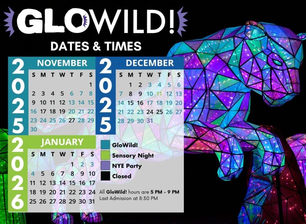 Yes, you’re more than welcome to enjoy both experiences in the same day! However, all guests must exit the Zoo when it closes at 4:00 PM so our team can prepare for the event. GloWILD opens at 5:00 PM, and you may re-enter at that time with your GloWILD tickets. Please note that there is no combined day/night pass, do daytime admission and GloWILD admission must be purchased separately.