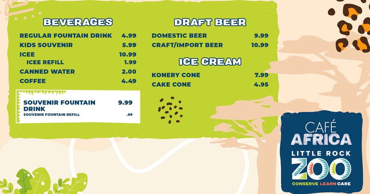 Make your visit to the Little Rock Zoo even more memorable with a stop at Café Africa. Whether you’re in the mood for a quick snack or a full meal, our diverse menu and inviting atmosphere are sure to delight.